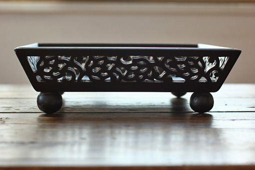 木製の、足つきのトレイです。