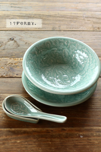丸皿17cmはこちら。れんげとれんげ置きも一緒に♪