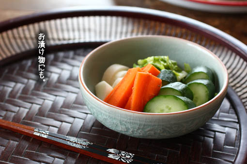 | 自宅用に頂きました。縁のせいか、かなり落ち着いた感じではありますが、取り皿としては勿論、朝の漬物、箸休めにも使えて重宝しています。 | ||