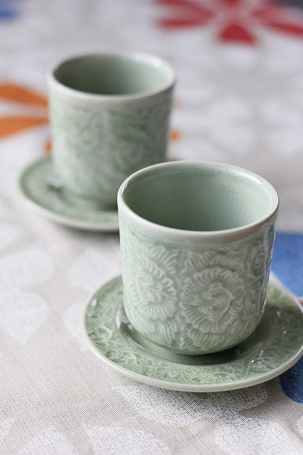 セラドンの湯のみとセットで使うと、