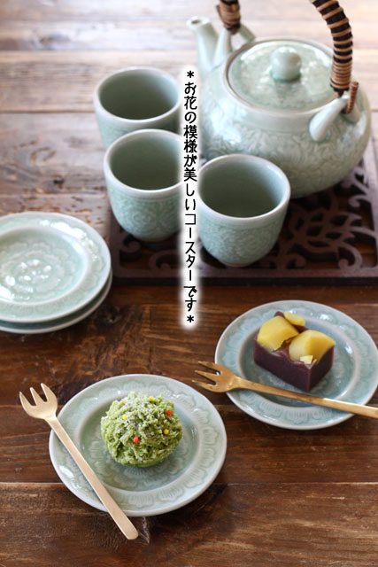 セラドンのコースター 中 ローズ ナチュラルグリーン