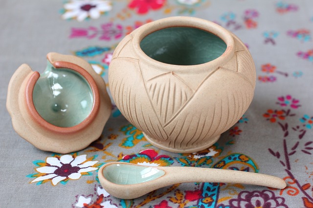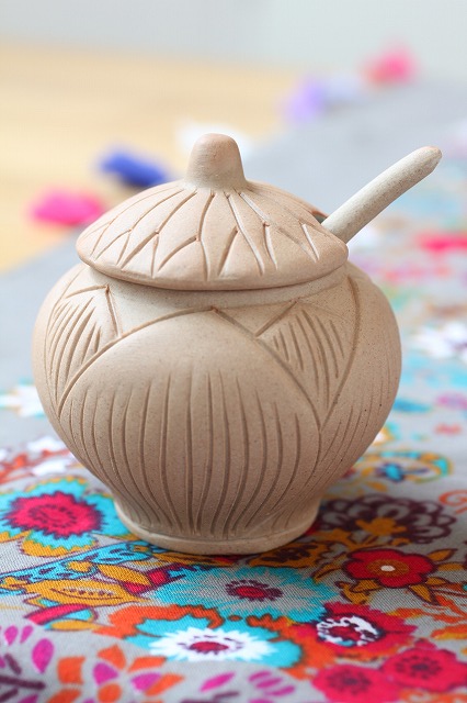 | サイズ | ポット;直径約8.5cm、深さ約5.5cm スプーン;長さ約10cm |