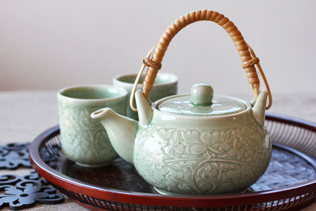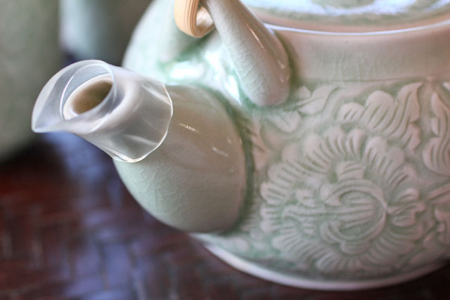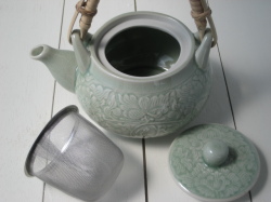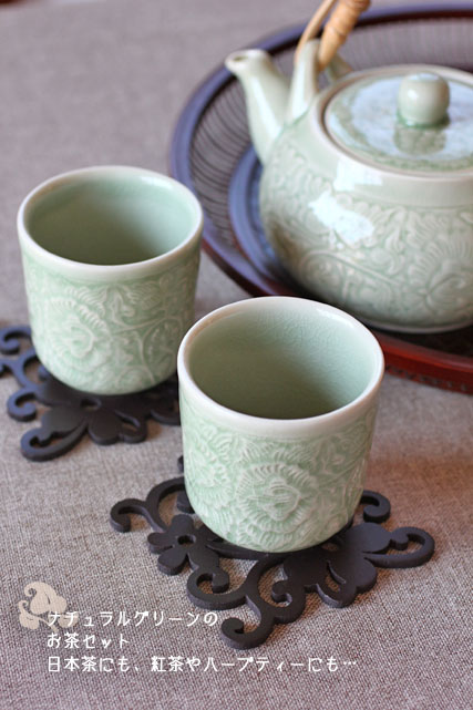 | 素 材 | セラドン焼き(青磁器)、 ラタン(取っ手部分)、 ステンレス(茶こし) |