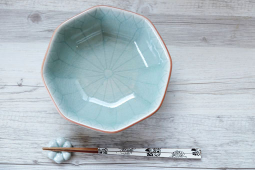ロータスの葉っぱがモチーフの、八角形のおわんです。